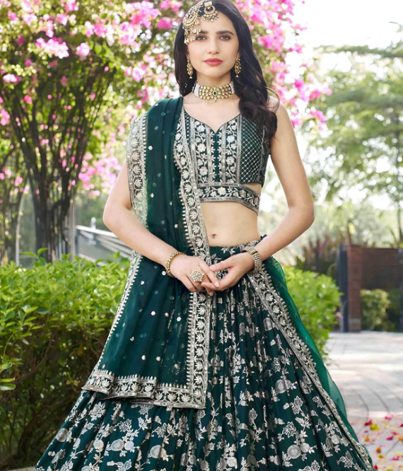 Blue lehenga outfits hold a timeless appeal that transcends trends. The colour blue evokes serenity and sophistication, making it ideal for weddings, receptions, or festive ceremonies. A blue lehenga can be styled in multiple ways, from traditional embroidery to modern minimalist designs. It complements various skin tones and can be paired with silver or gold jewellery to elevate the overall look.